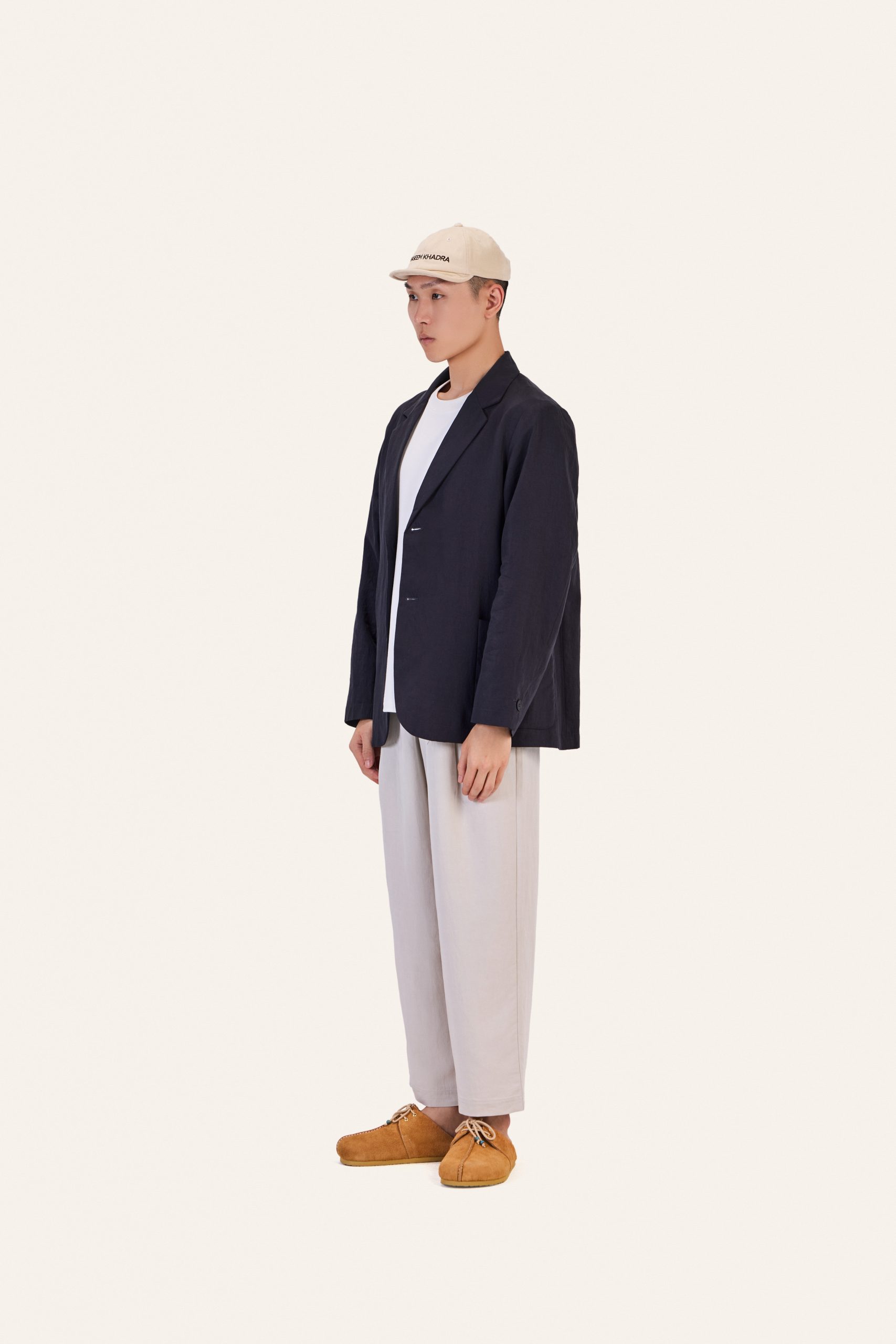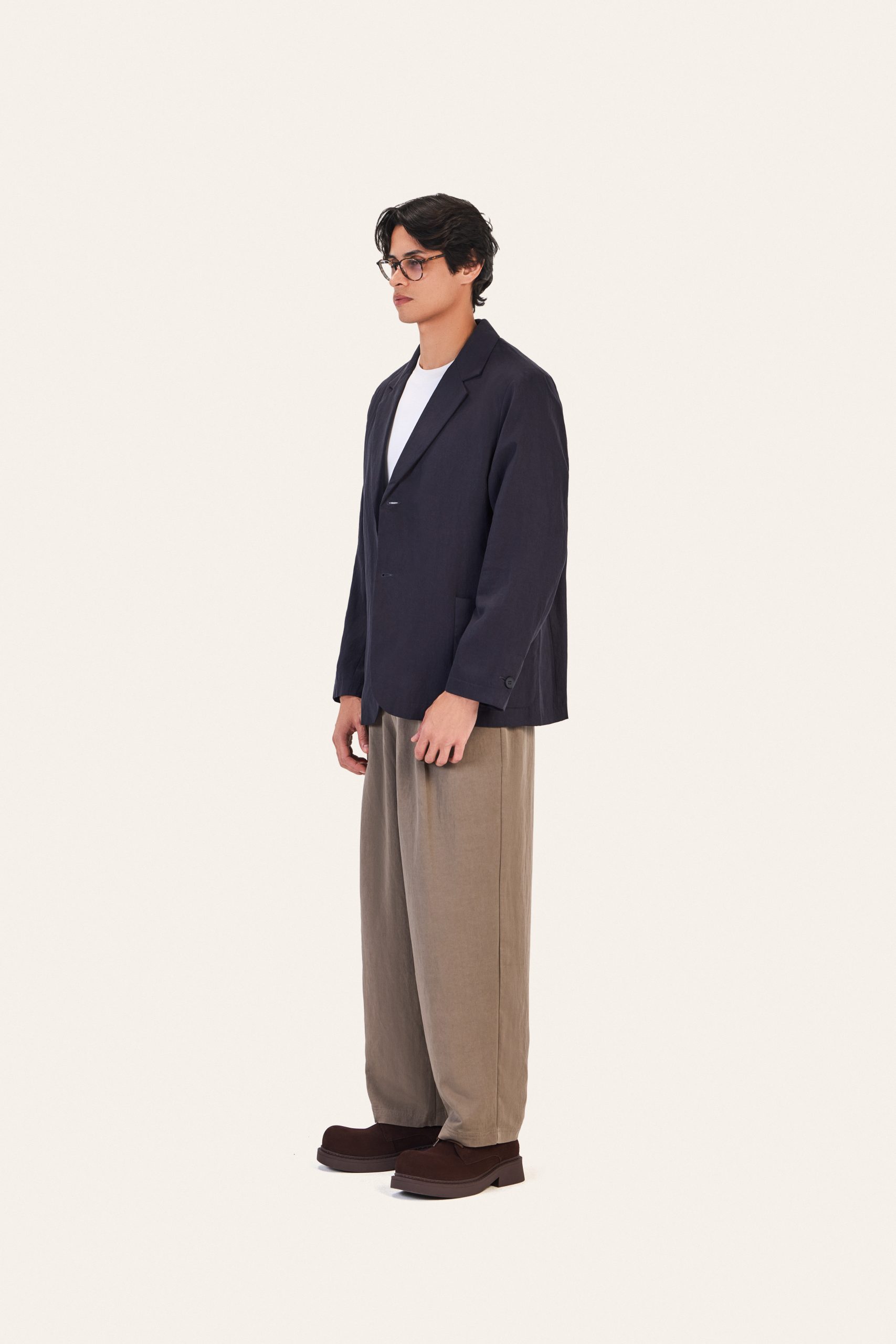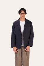 A softly structured blazer in a Midnight tone. Designed with relaxed shoulders and a fluid drape that follows the body with ease. Finished with minimal detailing and a clean front, it blends tailored precision with everyday comfort.