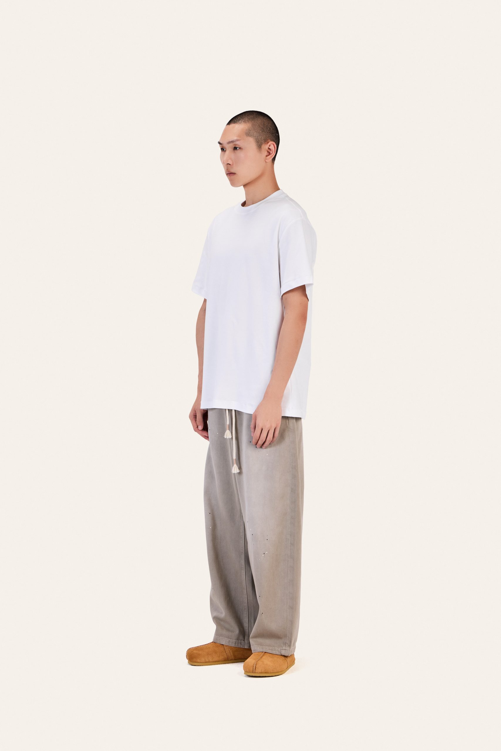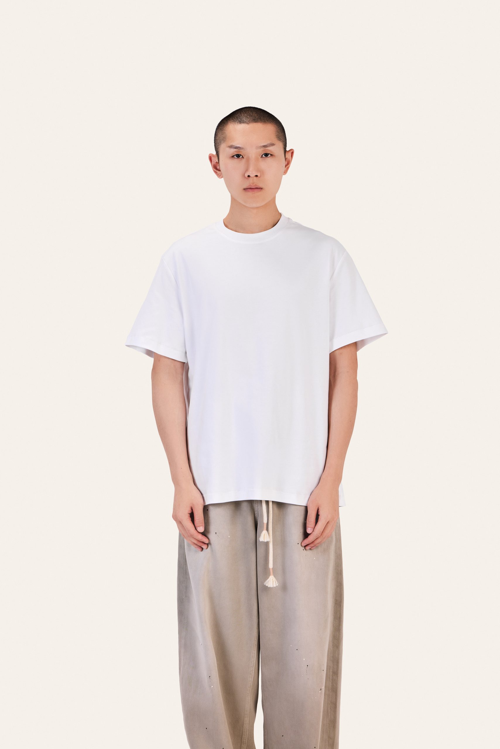 A study in quiet refinement. Crafted from pure cotton, The Essential Tee in white is cut to a relaxed silhouette that balances structure with ease. The dense jersey fabric offers a soft yet weighty drape, designed to age beautifully with wear. Minimal seams, no visible branding only the precision of proportion and the calm confidence of simplicity.