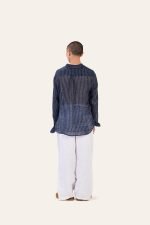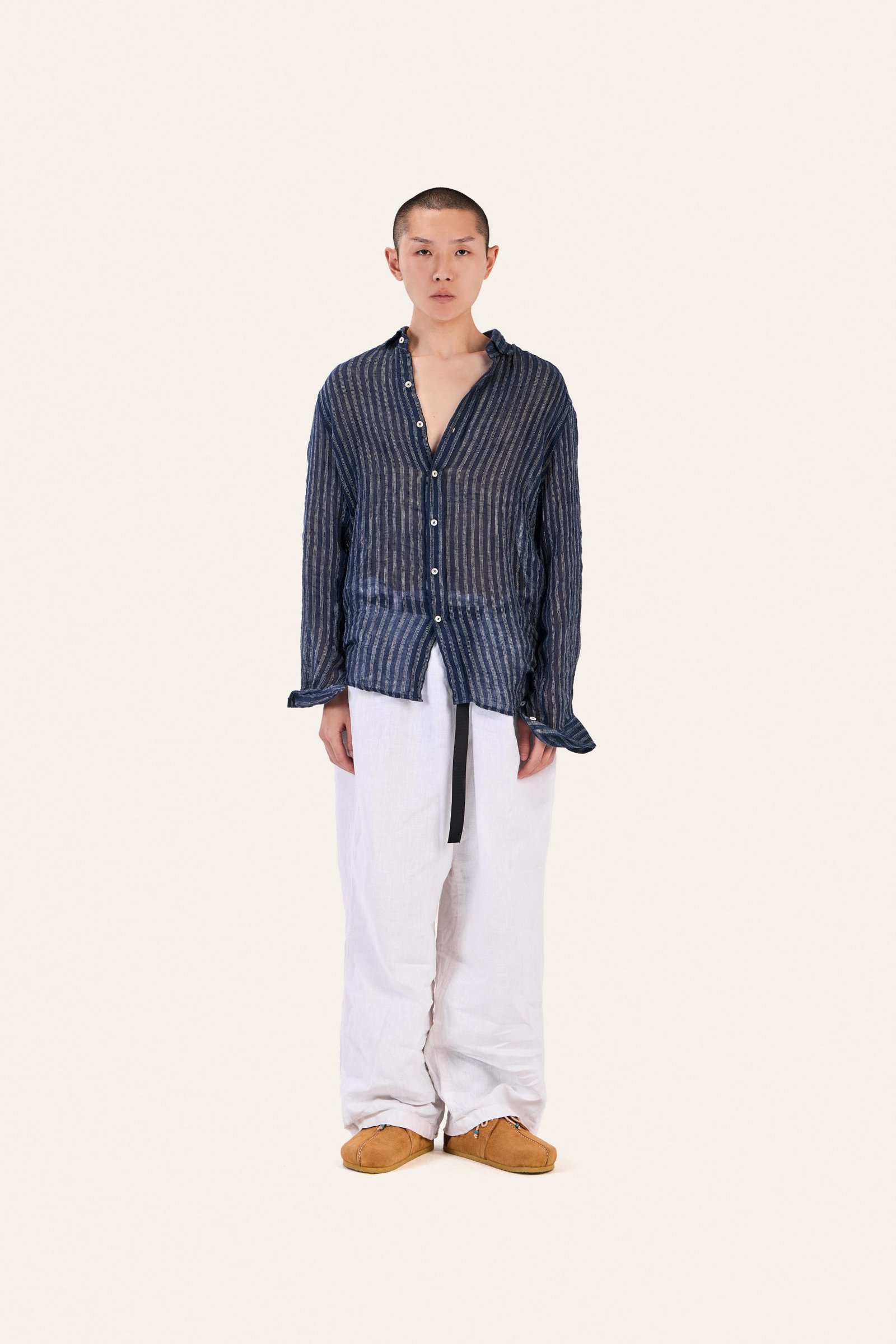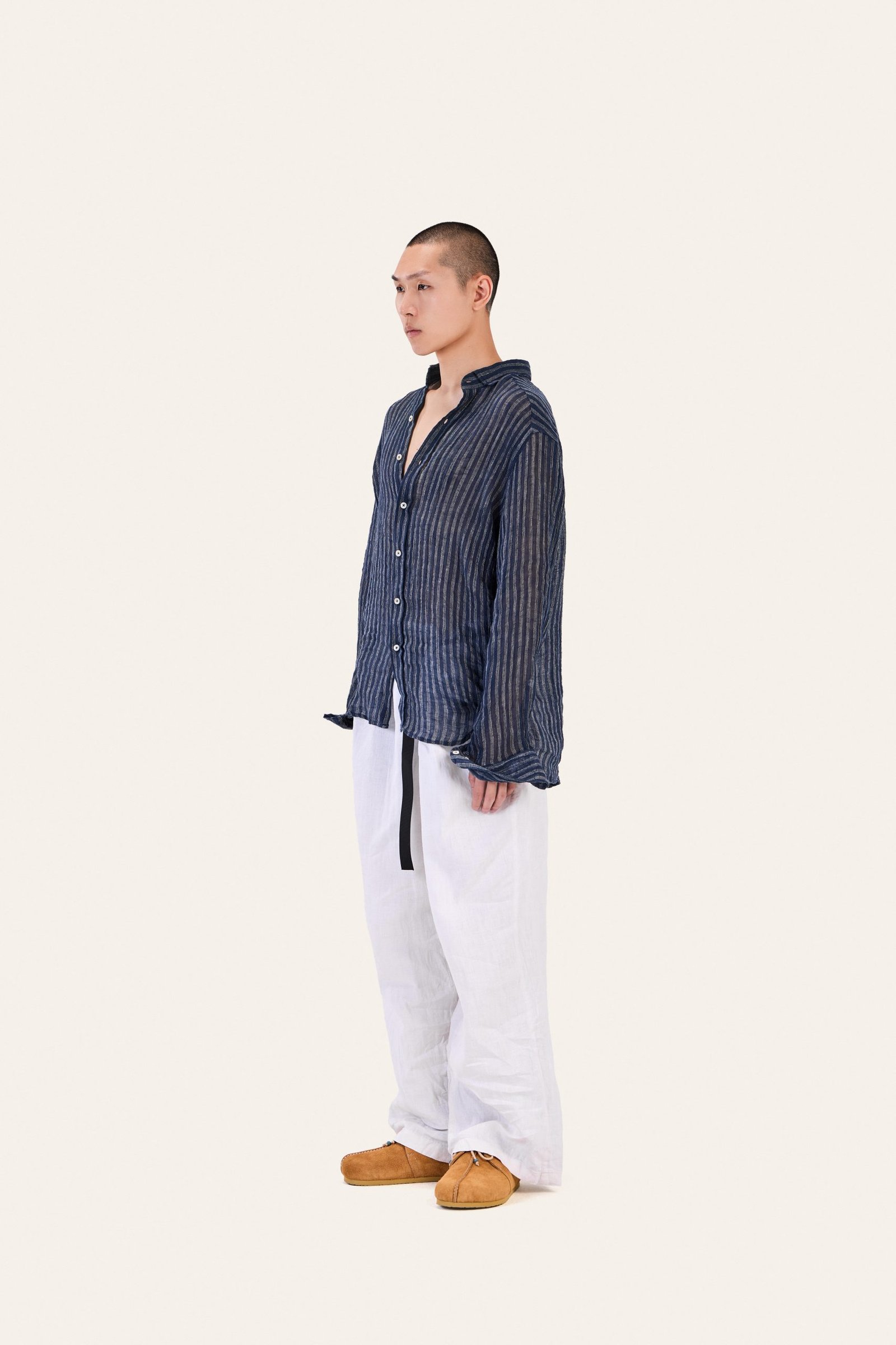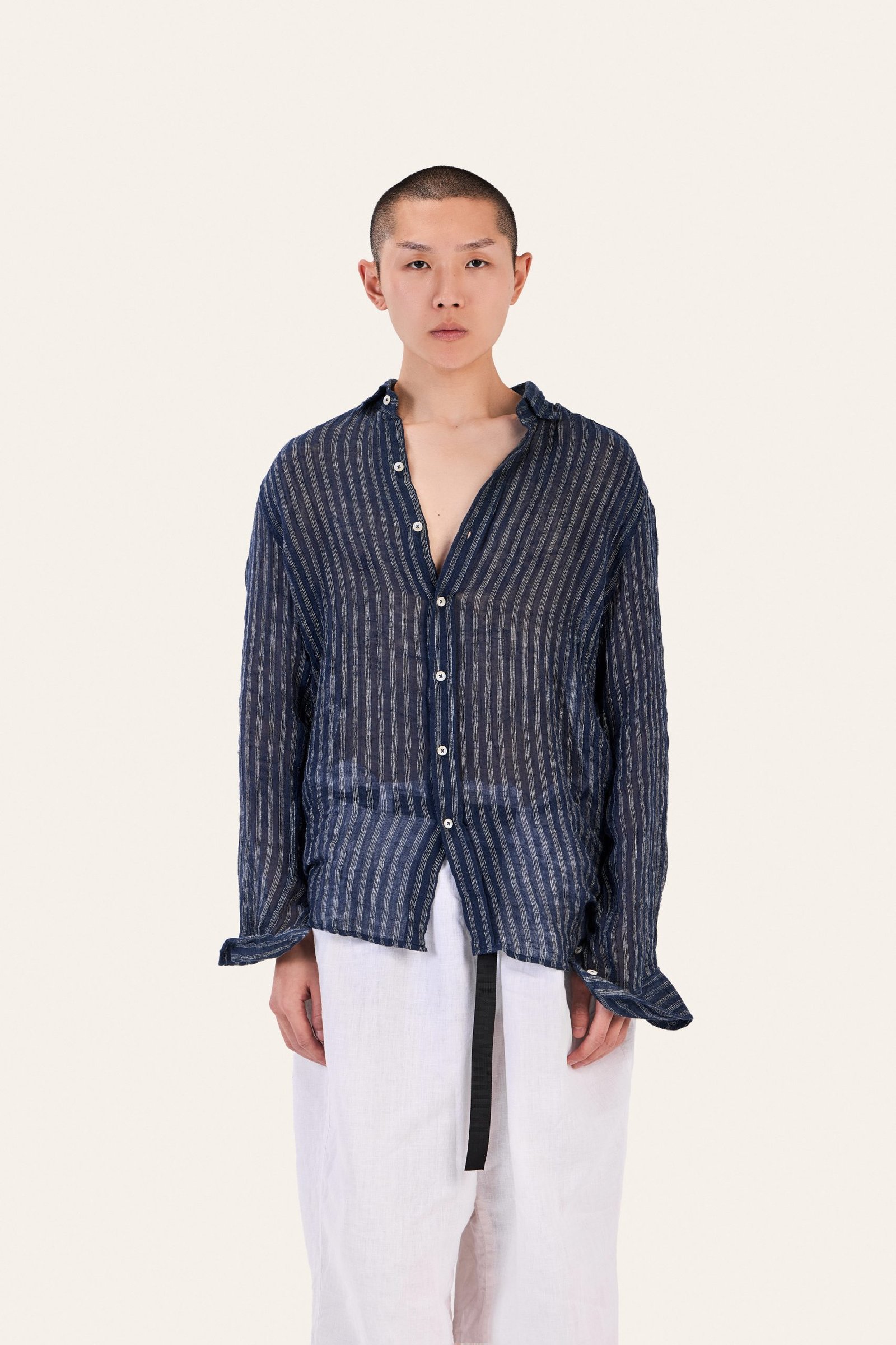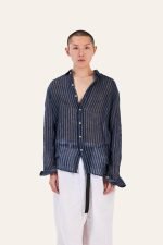 Pure linen shirt with vertical stripes. Lightweight, semi-sheer. Relaxed.