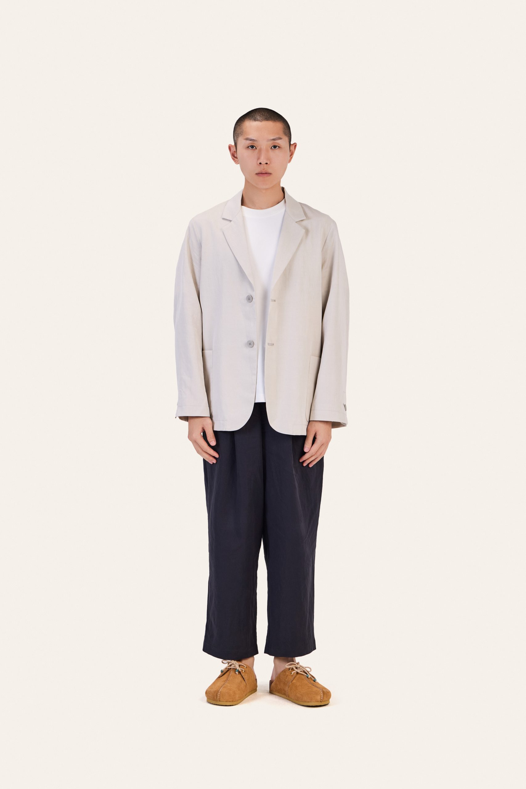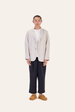 A softly structured blazer in a calm mist tone. Designed with relaxed shoulders and a fluid drape that follows the body with ease. Finished with minimal detailing and a clean front, it blends tailored precision with everyday comfort.