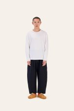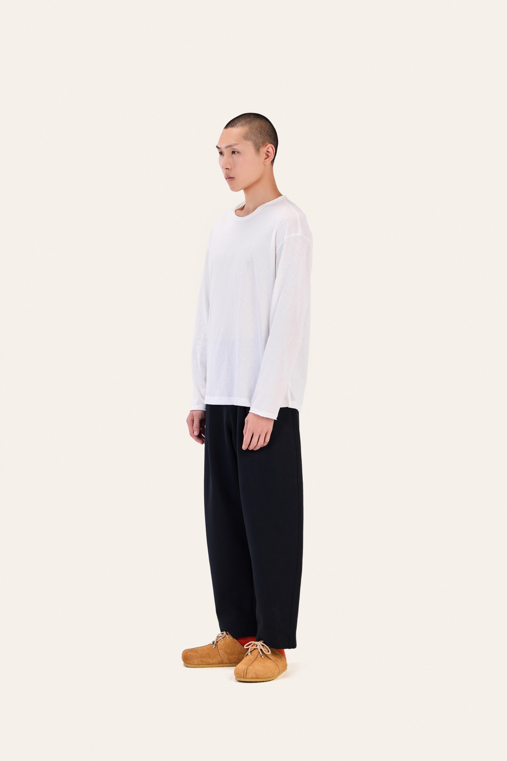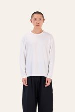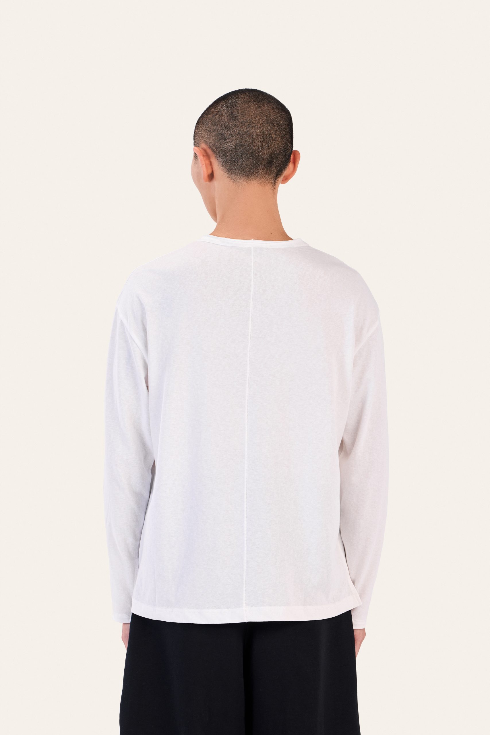 An exercise in minimal precision this long-sleeve tee is cut from pure cotton with a soft, breathable texture and a fluid drape. Designed with a relaxed silhouette and a clean back seam detail, it reflects an elevated simplicity. A foundational layer that stands alone with quiet confidence or slips seamlessly into any refined wardrobe rotation.