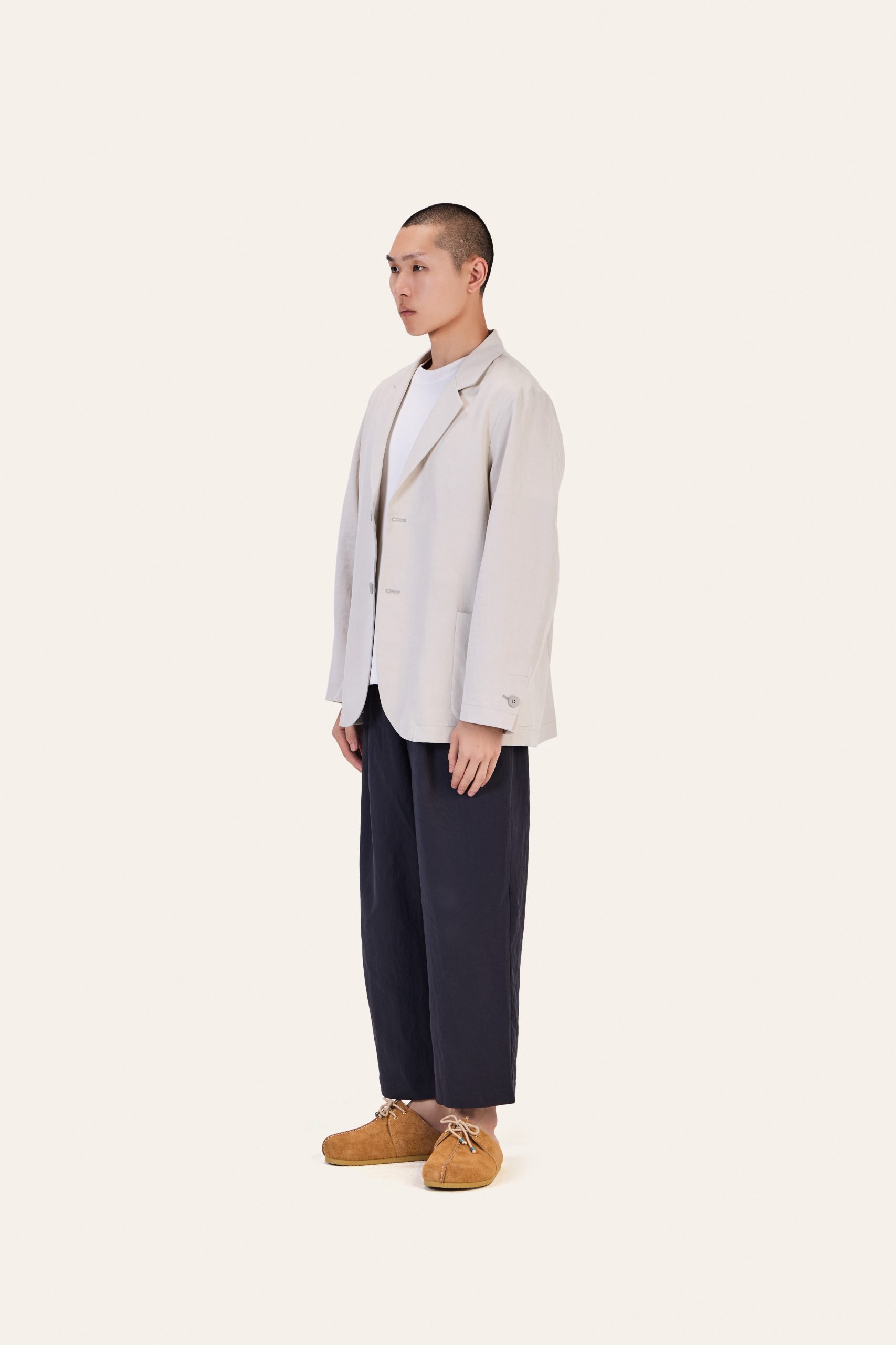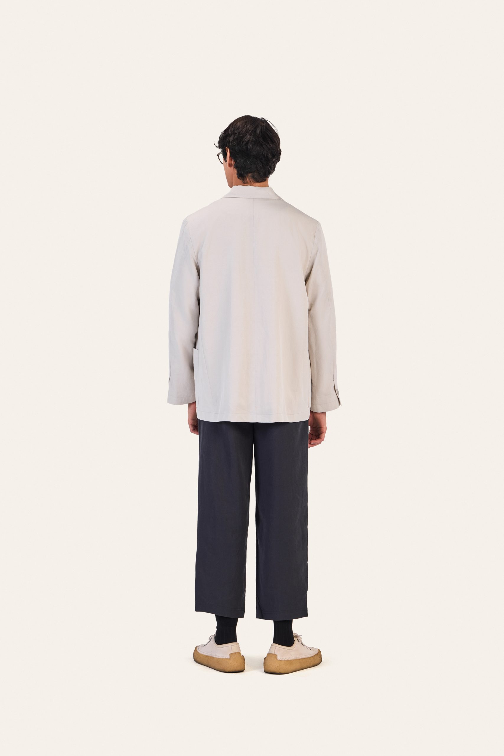 A straight-leg trouser cut from lightweight fabric in a soft midnight shade. Tailored with a natural waist and subtle cropped length, it offers a refined yet relaxed silhouette.